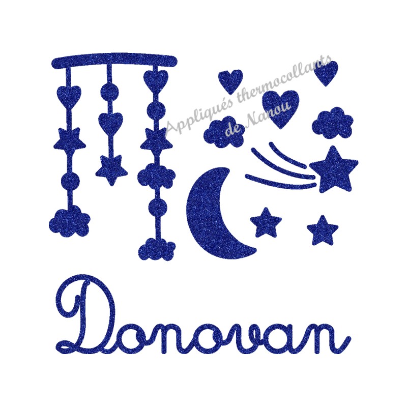 Appliqué thermocollant pailleté étoile lune prénom garçon décorations lit bébé