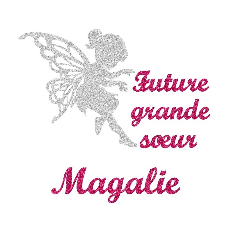 Cet ensemble fée personnalisé avec le prénom de votre choix en thermocollant flex brillant est créé artisanalement par nos soins.
