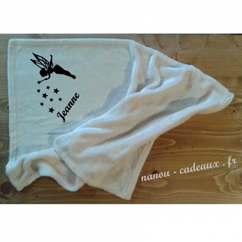 Couverture avec une fée et le prénom de votre choix. Idéale pour une poussette, un couffin, un siège auto...