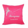 Housse de coussin de naissance fée avec un prénom et une date de naissance.
