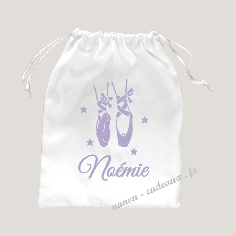 Ce petit avec des chaussons de ballerine est personnalisé avec le prénom de votre choix.