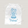 Ce pochon avec un bébé girafe est personnalisé avec le prénom de votre choix en flex velours
